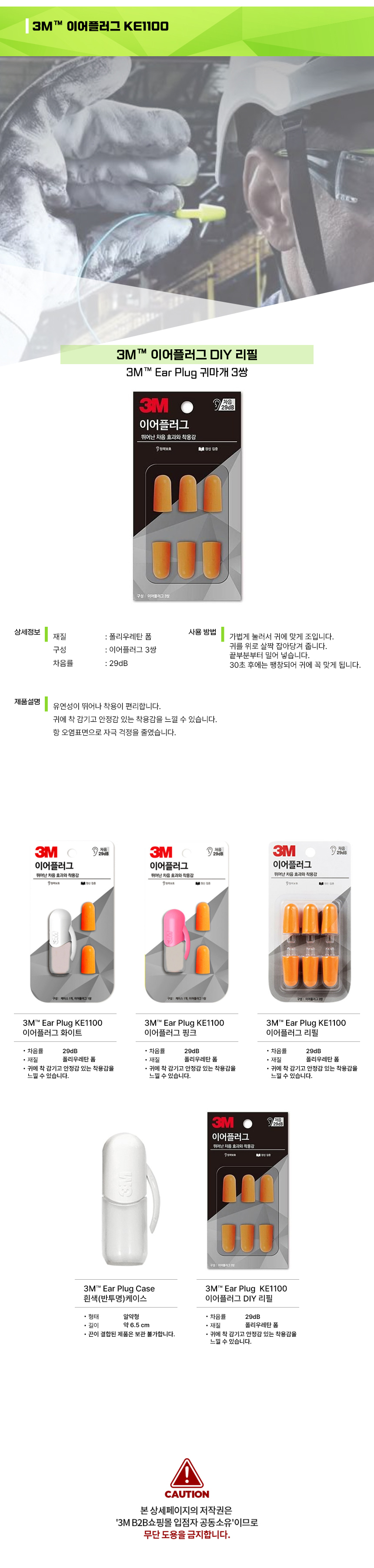 »óǰ¸í [3M] ±Í¸¶°³ À̾îÇ÷¯±× ¼ÒÀ½¹æÁö ¼ö¸é±Í¸¶°³ KE1100 ¸®ÇÊ 3½Ö 1P