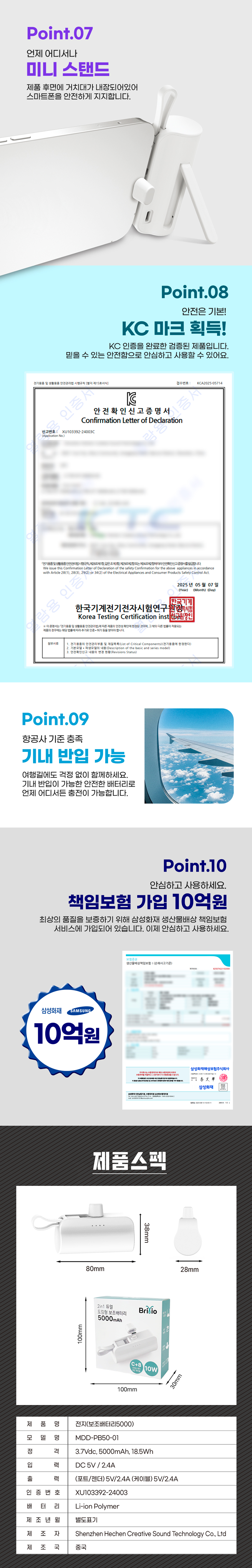 [īī¿ÀÇÁ·»Áî] µµÅ·Çü º¸Á¶¹èÅ͸® 5000mAh (CŸÀÔ/8ÇÉ) 1P