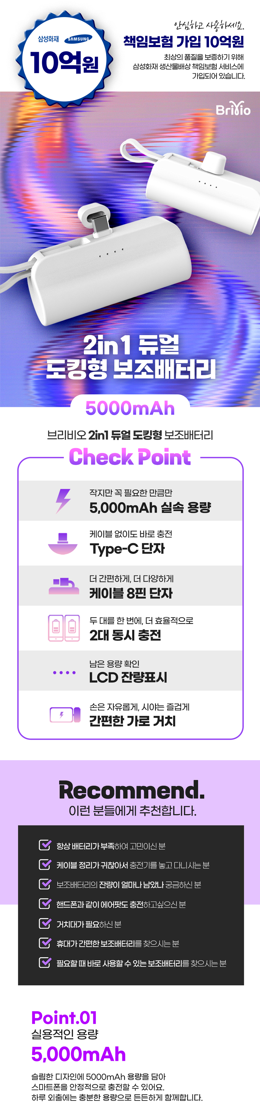 ¹Ù¸¥»ýȰ ³ª´®5000 µà¾ó µµÅ· ÀÏüÇü º¸Á¶¹èÅ͸® 5000mAh cŸÀÔ+8ÇÉ 1P