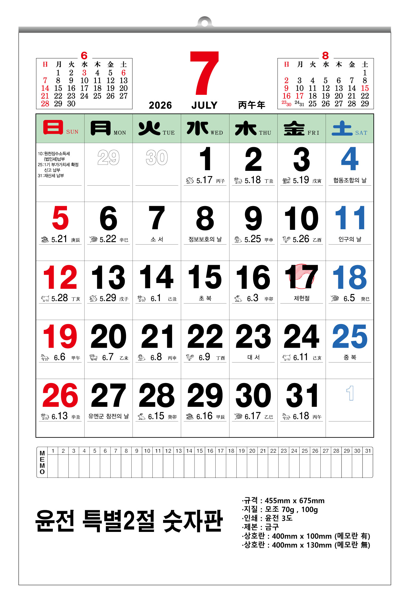 2026³â À±Àü Ưº°2Àý ¼ýÀÚÆÇ ´Þ·Â 455x675mm (70g/100g) 1P